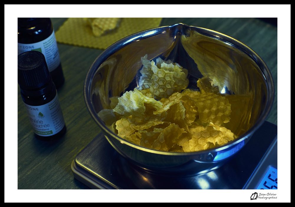 3° Lorsque la cire d’abeille est totalement fondue, sortir le bol du bain-marie et homogénéiser.