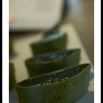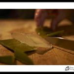 5° Prélevez la pulpe centrale (gel) et transvasez-la dans un bol en inox. (ou utilisez-la telle quelle!)