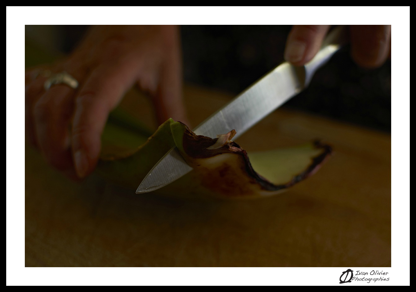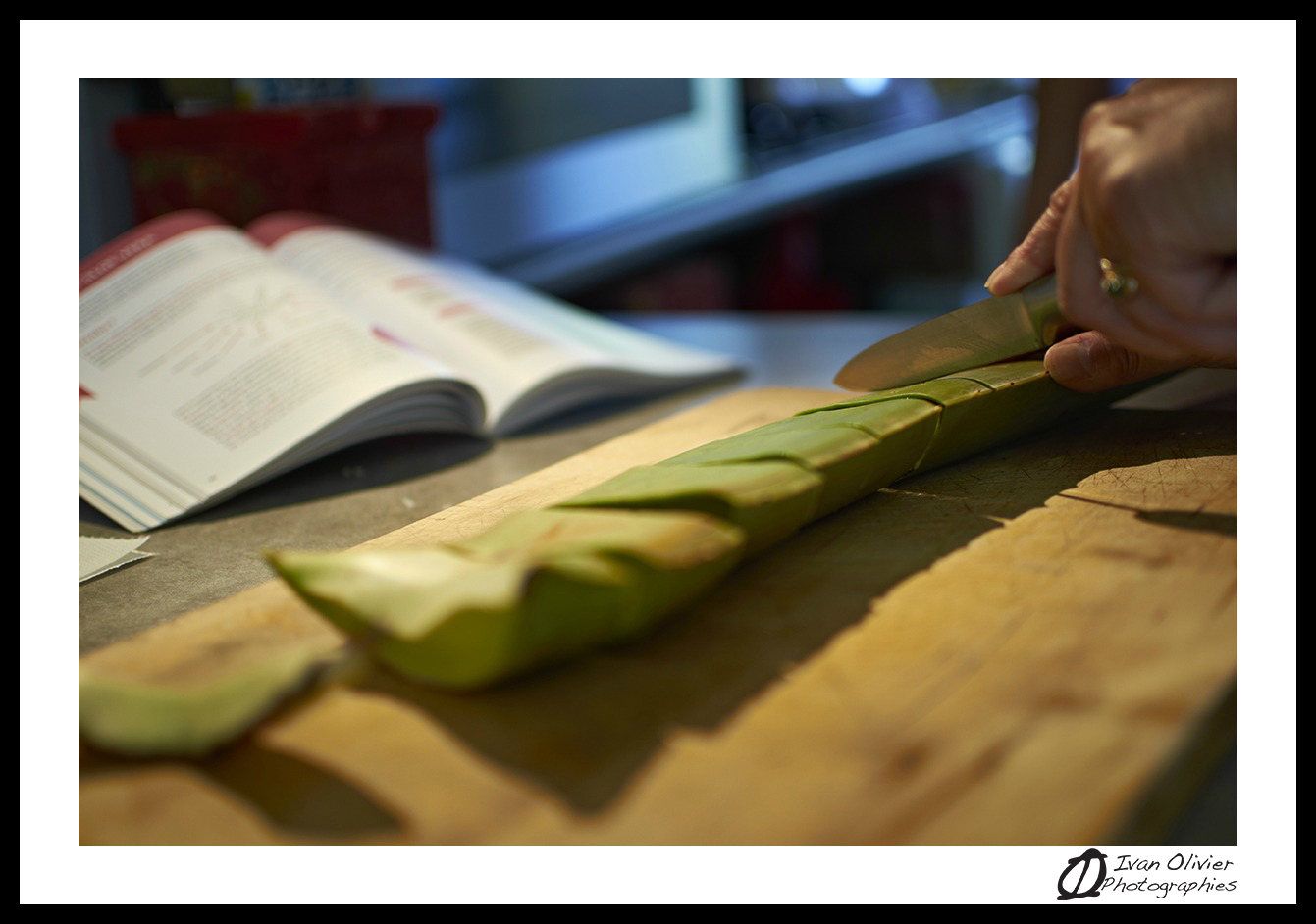 4° Retirez ensuite les bords (épines) puis épluchez la peau de chaque tronçon.