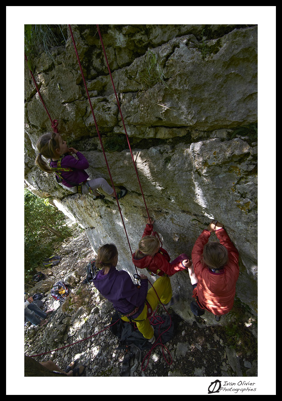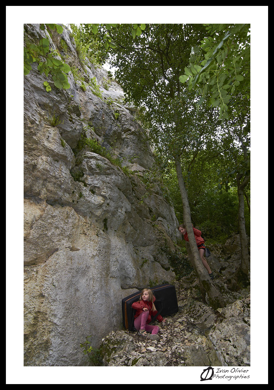 Admirablement sculpté, ce rocher offre aux doigts des petites réglettes, des fissures, des plats et des gouttes d’eau! Aussi esthétique que ludique, cette falaise est un pur bonheur pour une journée en falaise en famille! Les pieds de voies sont relativement safe pour les enfants. 🙂