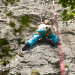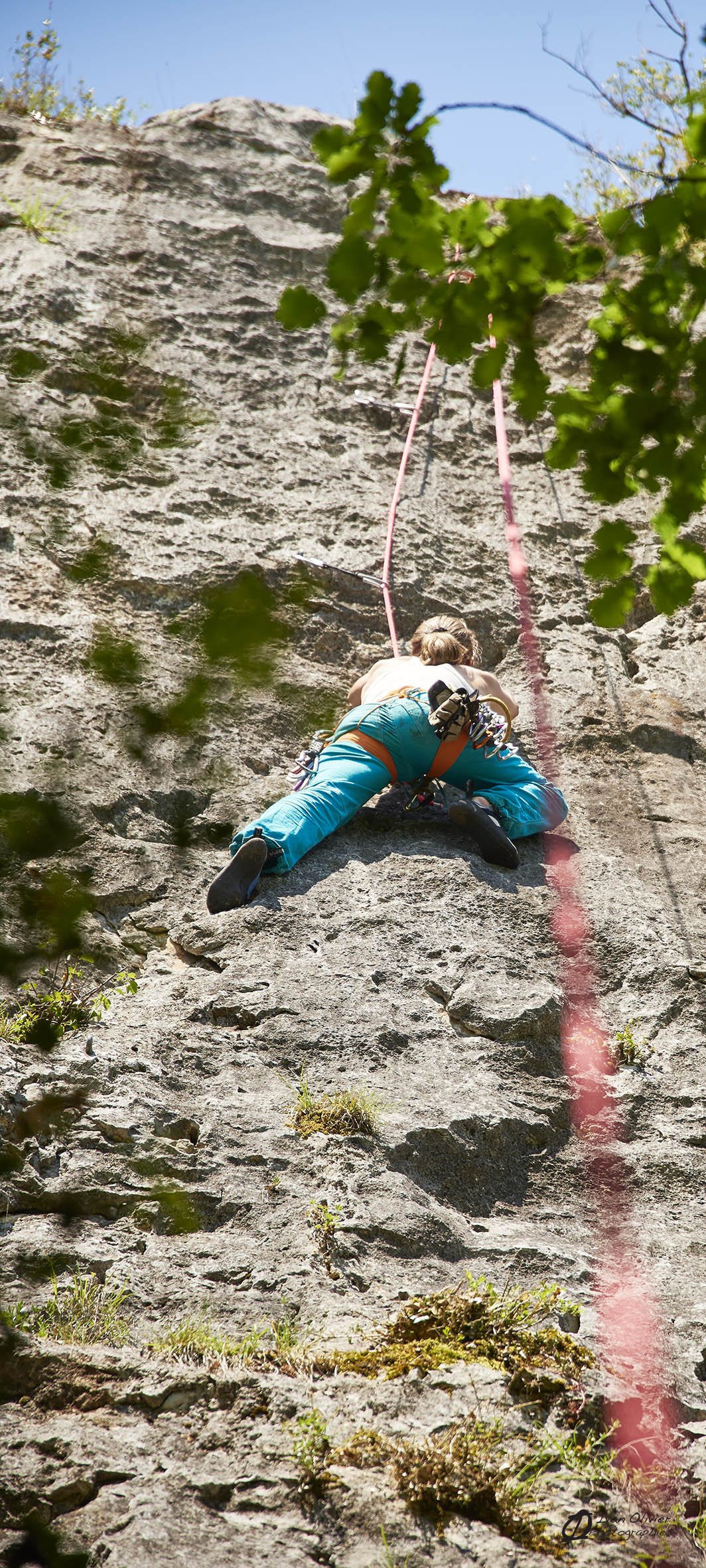 Mélanie dans « L’éperon » – 6a, secteur Rave dans les avant-bras