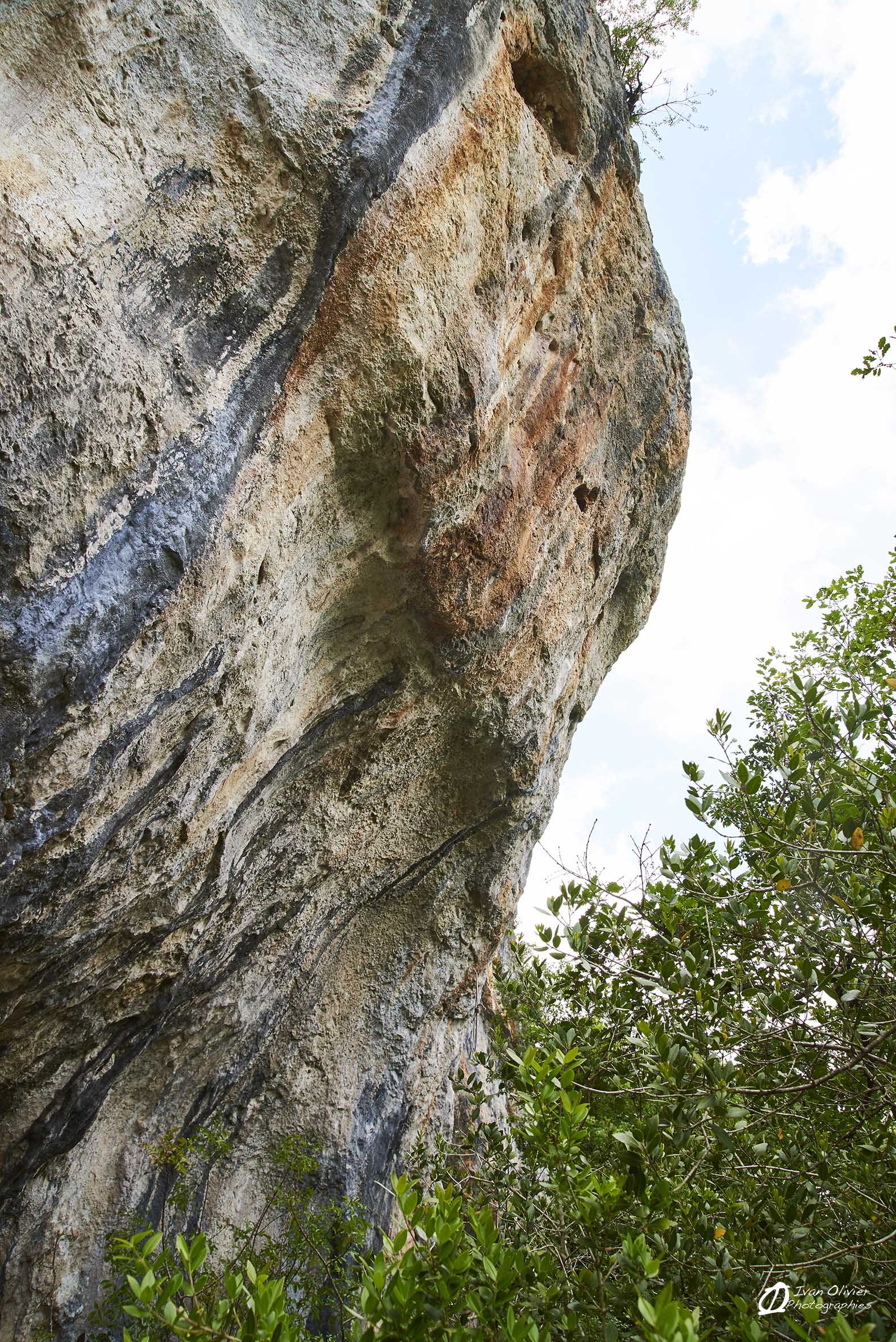Si vous venez avec des débutants ou des enfants, c’est ce secteur que vous choisirez! Simple et bonne raison: deux voies cotées en 4c très belles et avec un calcaire compact et des prises bien sculptées. Rare pour le mentionner, des 4c aussi beaux ne se trouvent pas aussi facilement!