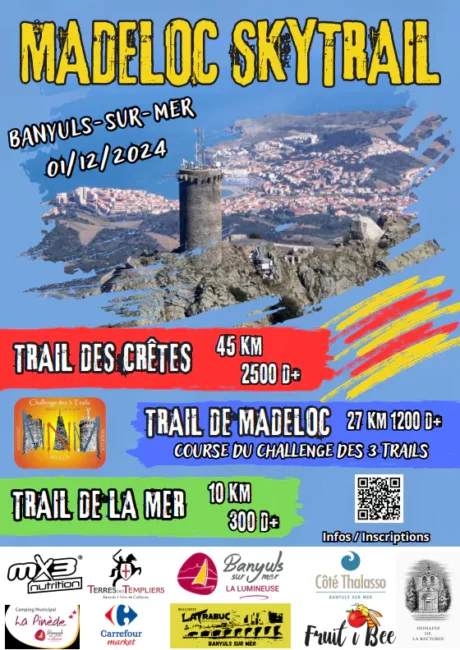 Le départ et l’arrivée se font à Banyuls-sur-Mer, dans les Pyrénées Orientales. C’est un superbe parcours qui passe dans les terres, les crêtes du massif des Albères puis redescend près de la côte Vermeille et sa réserve naturelle marine de Cerbère-Banyuls. La trace nous fait également passer par d’anciennes tours en ruines et quelques vestiges militaires dont la fameuse tour Madeloc et une ancienne dynamiterie. Le mode rando-trail sans dossard nous a permis de nous arrêter régulièrement aux points de vue, de profiter de cette histoire et de reposer les guiboles.