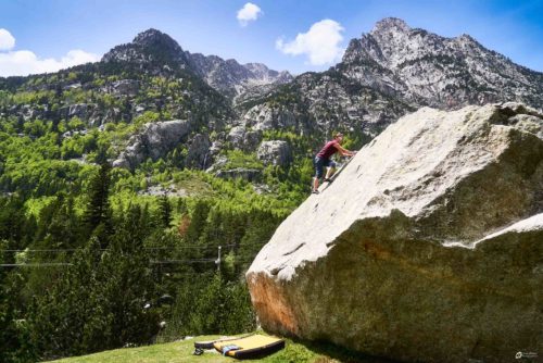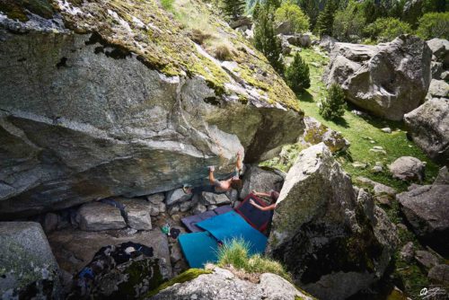 Dans les pyrénées espagnoles se trouve un très beau site de blocs, de couennes et de grandes voies, en plein cœur d’un parc national niché dans les montagnes. Ailefroide, coté français, ça vous parle ? Côté Catalogne il y a le même territoire de jeu. Escalade, randonnées, trails, refuges, haute-montagne, rivières et lacs, c’est une destination magnifique pour se mettre au vert et pratiquer les sports outdoor dans un lieu préservé. Avec des paysages à couper le souffle, des parois vertigineuses et des blocs éparpillés, Cavallers est devenu une destination prisée par les grimpeurs du monde entier. Situé dans la province de Lleida, en Catalogne, Cavallers est entouré de montagnes majestueuses, de lacs cristallins et de vallées verdoyantes. Les formations rocheuses uniques offrent une multitude de voies d’escalade adaptées à tous les niveaux, des débutants aux grimpeurs expérimentés.