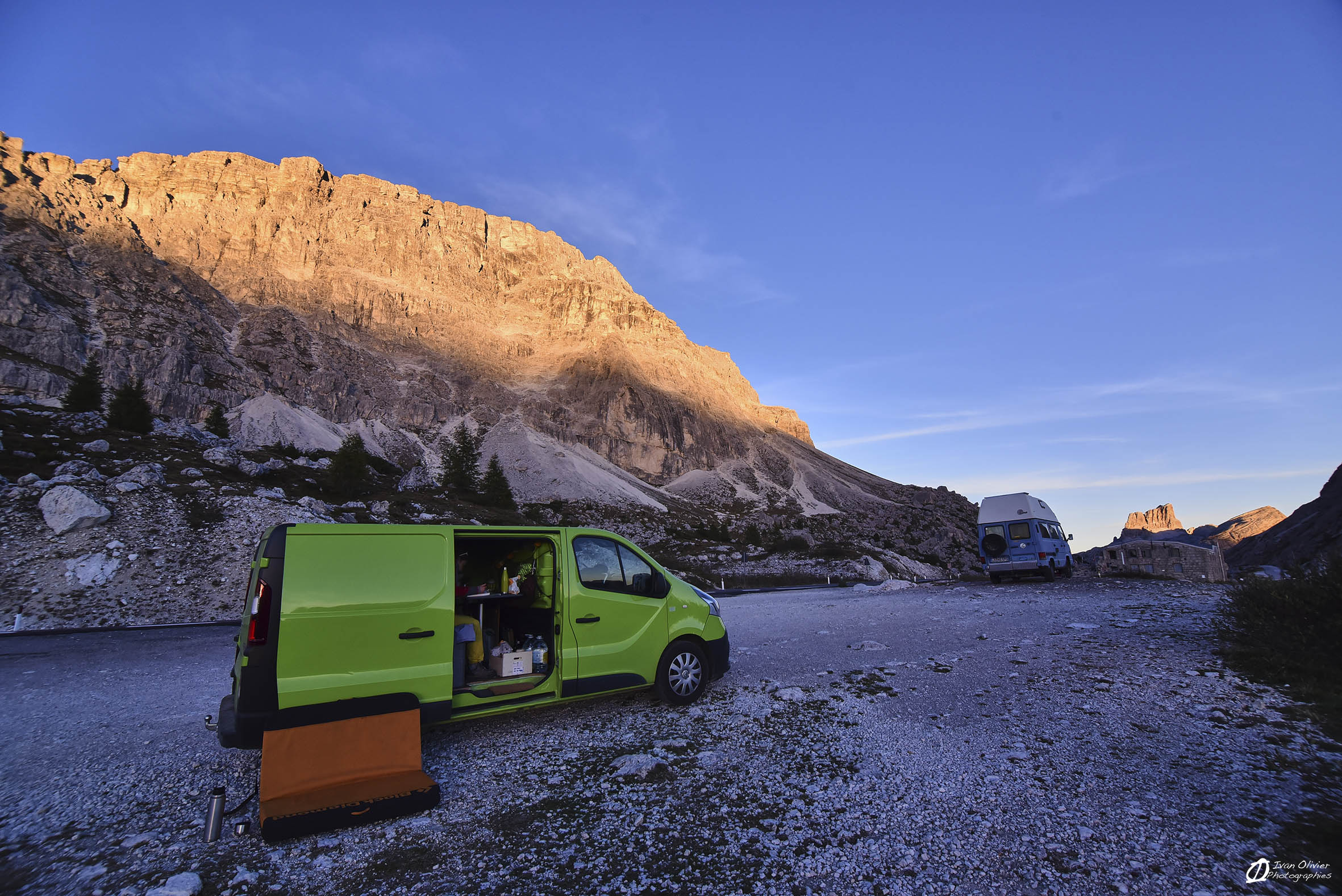 Concernant les bivouacs, nous avons utilisés Park4night chaque soir et ce fut parfait, nous n’avons payé qu’un seul parking en journée, celui du Col Passo, 5 euros pour laisser le camion toute la journée.