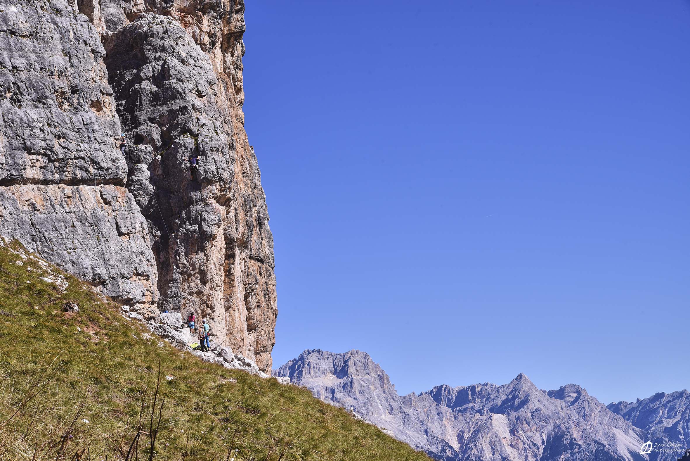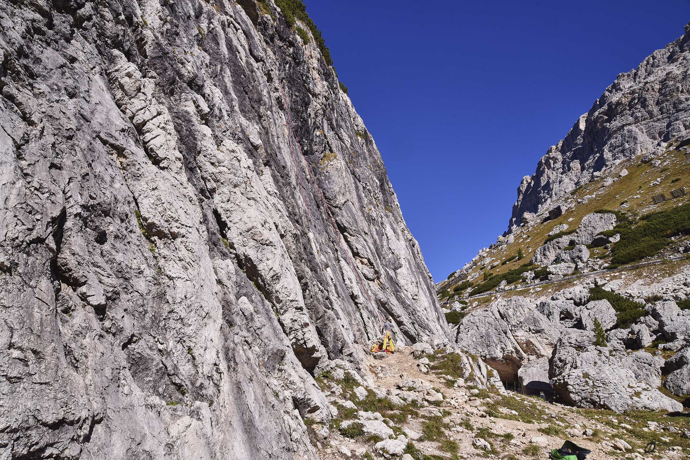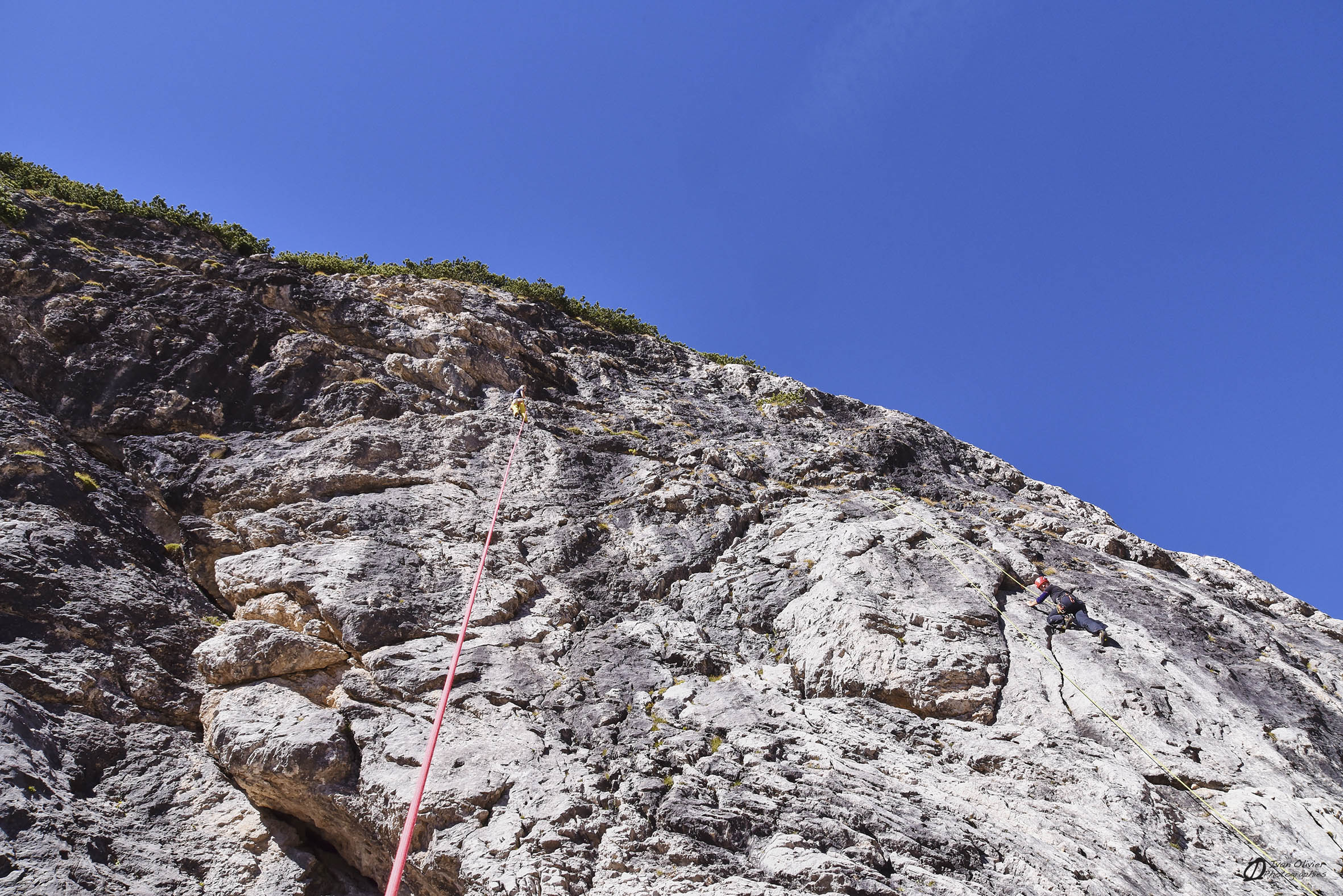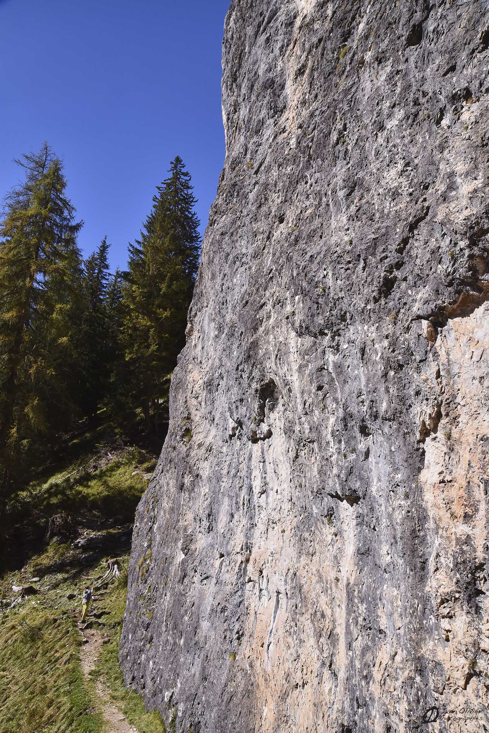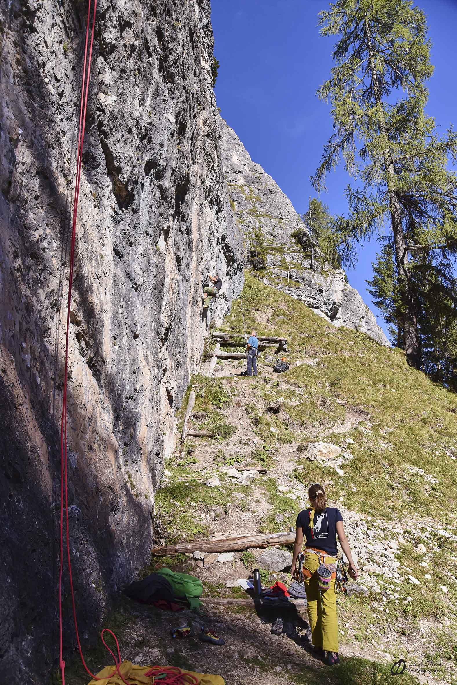 « Une des falaise les plus facile des Dolomites ». Et c’est le cas! 30 voies entre le 4 et le 6a et une voie en 7b+!