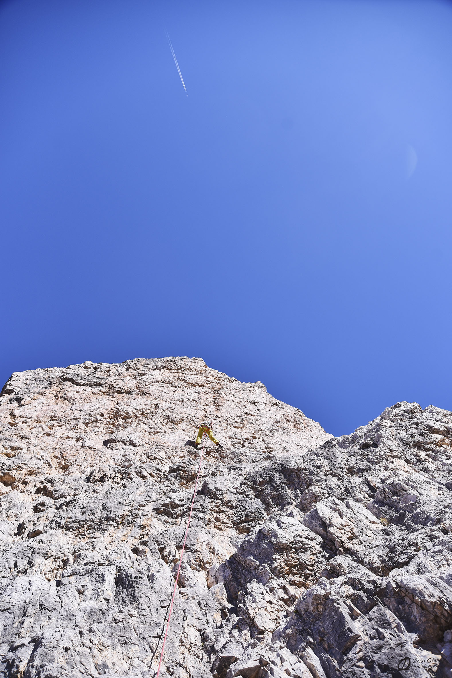 Une des principales caractéristiques de l’escalade dans les Dolomites est avant tout la verticalité à laquelle nous sommes confrontés y compris dans les itinéraires les plus faciles! Les lignes classiques louvoient souvent entre les surplombs pour suivre les lignes de faiblesse avec des traversées aériennes. Ambiance assurée, même en couenne!