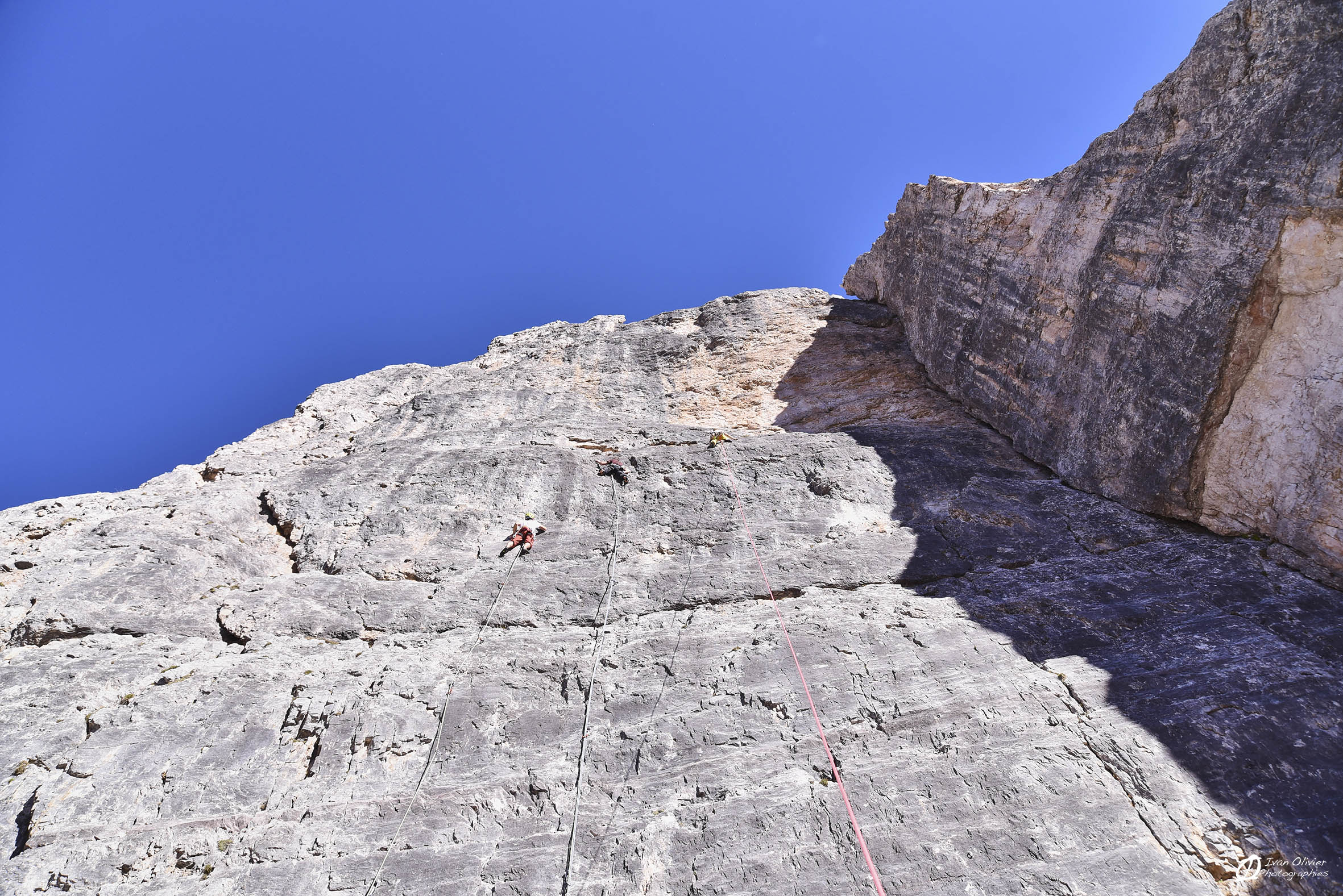 Contrairement aux grandes voies du coin qui nécessitent de l’équipement supplémentaire, les voies d’une longueur ont un équipement correct sur plaquettes. Attention à l’éloignement dans certaines voies, surtout dans les cotations accessibles. La découverte du Cinque Torri est toujours une expérience unique. Nous avons visité tous les secteurs en fonction de la course du soleil. Il faisait très chaud au soleil, par contre à l’ombre c’était doudoune! Il faudrait organiser un séjour entier sur les Cinque Torri tellement les possibilités et la beauté du site sont grandioses!