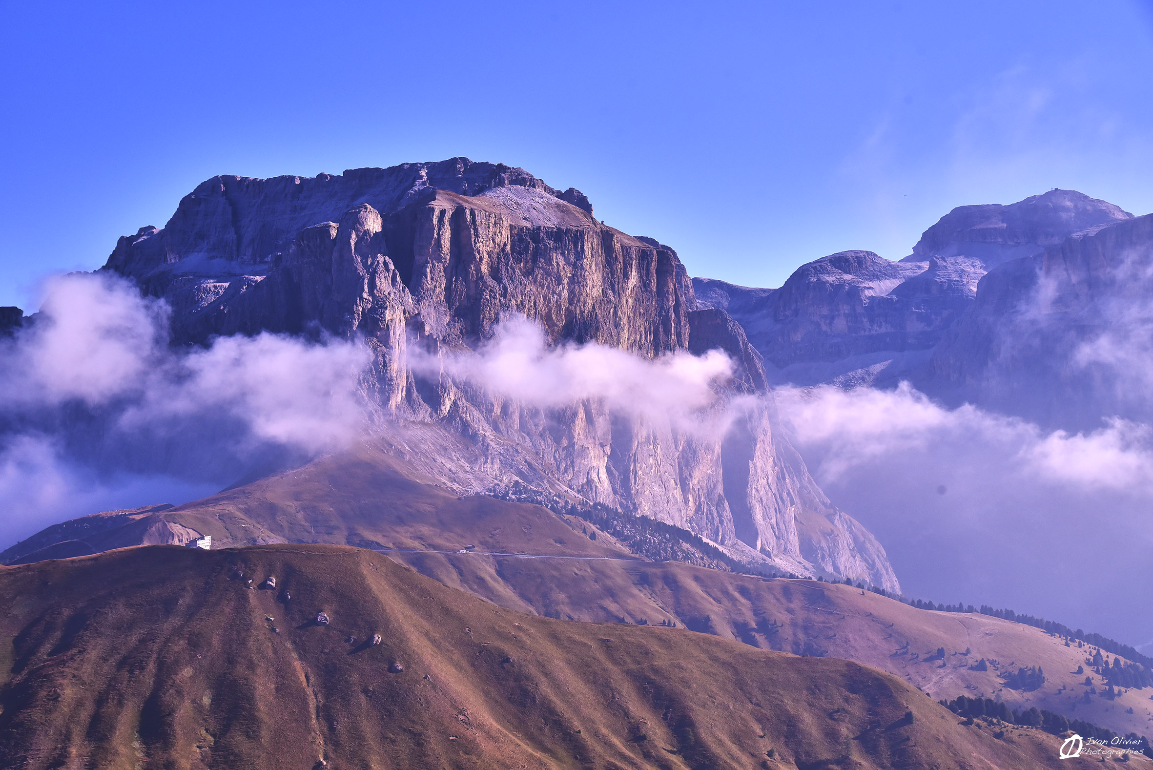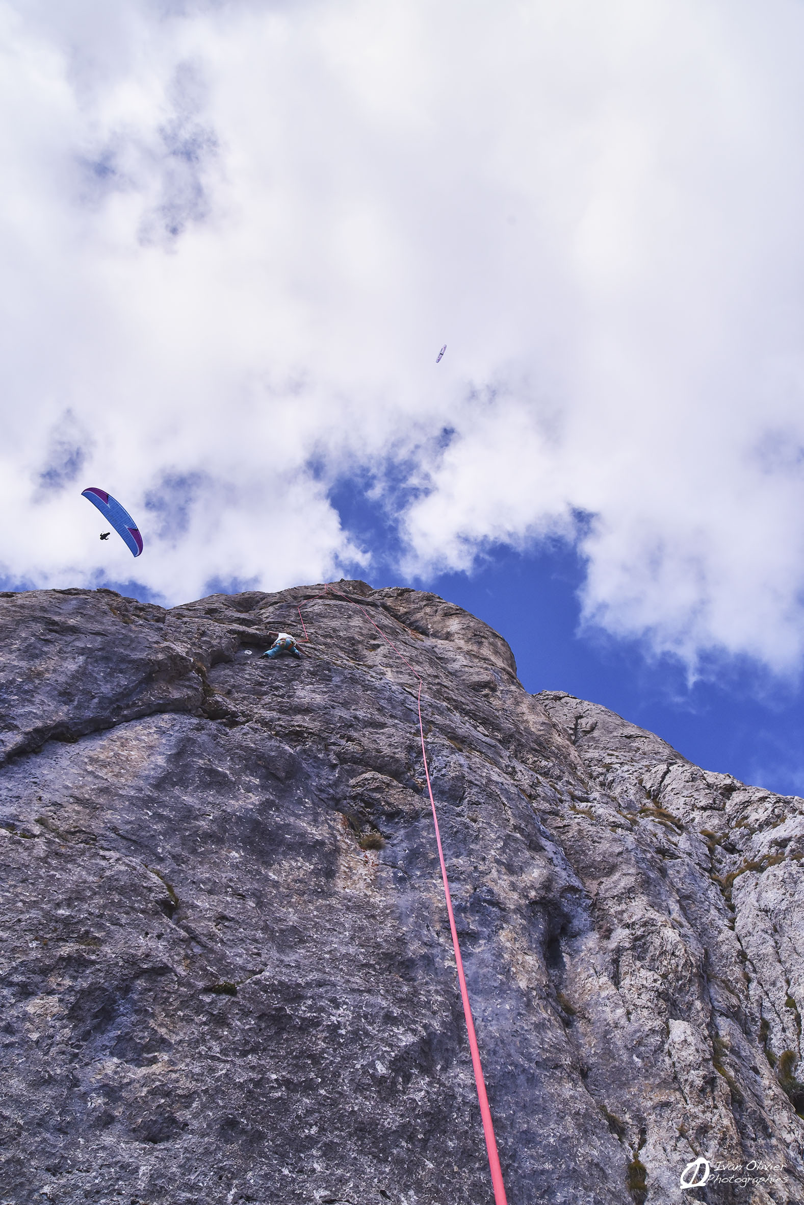 Ce fut la dernière falaise que nous avons visitée, en changeant de zone géographique, pour aller voir la Marmolada, plus haut massif des Dolomites avec son sommet (La Punta Penia) culminant à 3342m « La reine des Dolomites ». Une vue panoramique grandiose qui boucle ce voyage hors normes. En montant à Passo Sella, point de départ de votre journée, vous vous rendrez compte rapidement de la multitudes d’activités pratiquées dans cette zone. Parapentistes, Vttistes, randonneurs, grimpeurs. Ici il y a du monde sur terre et dans le ciel!