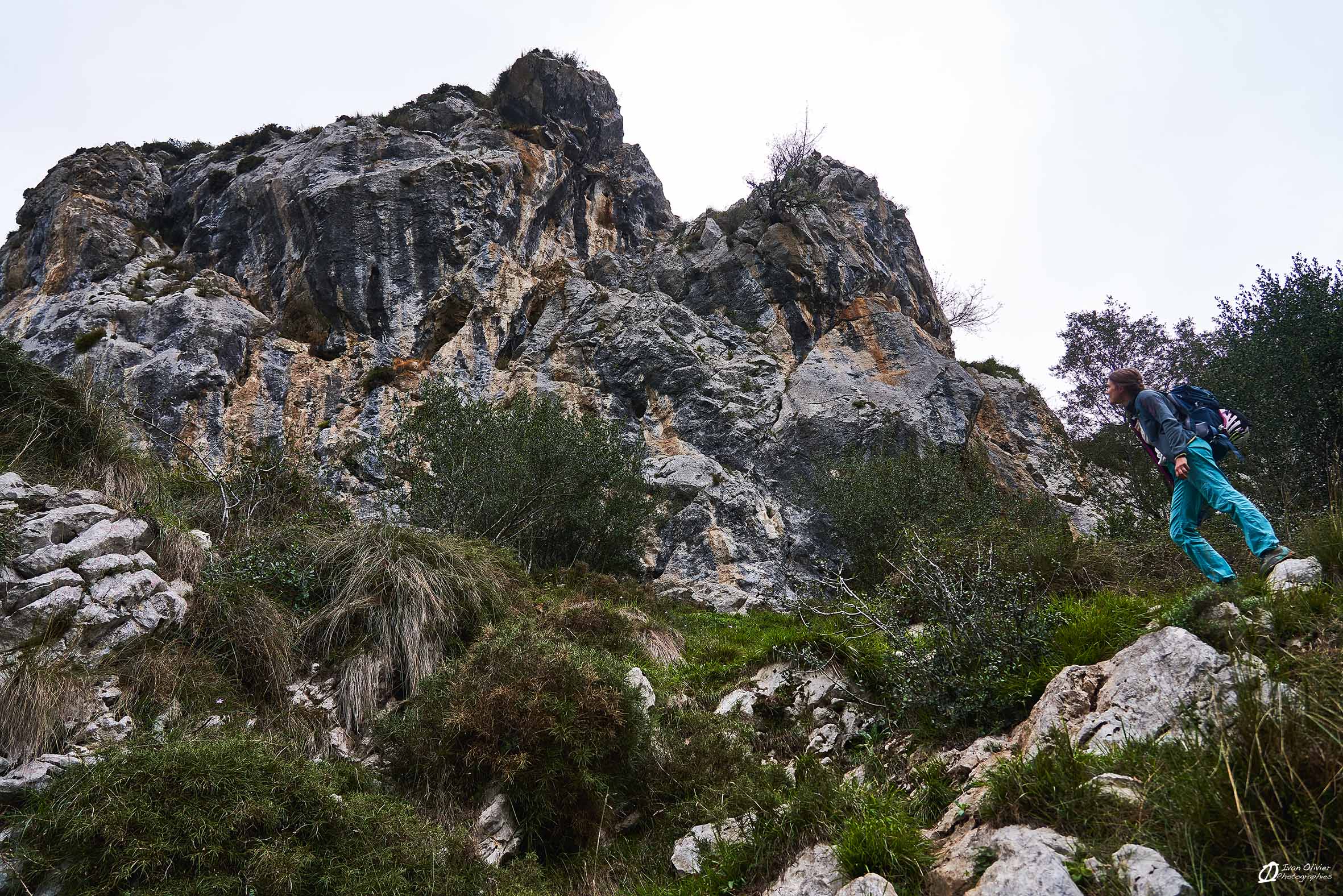 Jour 5: notre plan de départ était d’aller grimper à la falaise de Covascares dont la situation a l’air majestueuse. Malheureusement, la petite route raide qui y mène, parsemée de mousses et par un jour pluvieux, nous en a empechés… Le van glissait plutôt qu’il n’avançait… Plan B: La falaise d’El Mazucu (nous avons passé la nuit au pied de la falaise le long d’un chemin très calme). Un spot qui d’après le topo, a une magnifique qualité de roche et où la visite en vaut la peine et certainement un endroit où les générations futures pourront profiter d’un terrain de jeu incroyable. Pour nous, le plan B fut annulé faute d’humidité ambiante. Plan C: nous décidons (sur les conseils d’un lecteur du blog) d’aller visiter Las Cuevas et la Playa de Cobijeru. C’est l’un des avantages des Picos, tu peux aller au bord de la mer en moins de 20kms. La Cueva del Cobijeru est une grotte marine qui s’étend sur une longueur de plus de 300 mètres. Elle est accessible à marée basse et est connue pour ses magnifiques formations rocheuses, comme les stalactites et les stalagmites. Si un jour vous passez par là-bas, n’hésitez pas à y aller, c’est assez incroyable ! Ce plan C nous aura bien réjoui après avoir cherché le sentier d’accès un peu mystérieux…