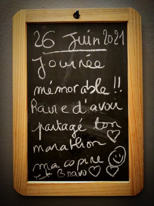 L’activité physique et sportive? Dès le lendemain, petite balade pour dérouiller tout çà. J’ai repris des étirements/yoga 3 jours après le marathon. Le renfo et le run en mode « tranquillou bilou » sont réapparus à partir du dimanche suivant à J+8 puis de façon un peu plus dans le mouv’ à J+13. Prochaine course? avec Gougou et prévue fin aout, de façon officielle cette fois-ci: sur le semi des Oussailles et toujours en Ariège Couserannaise.