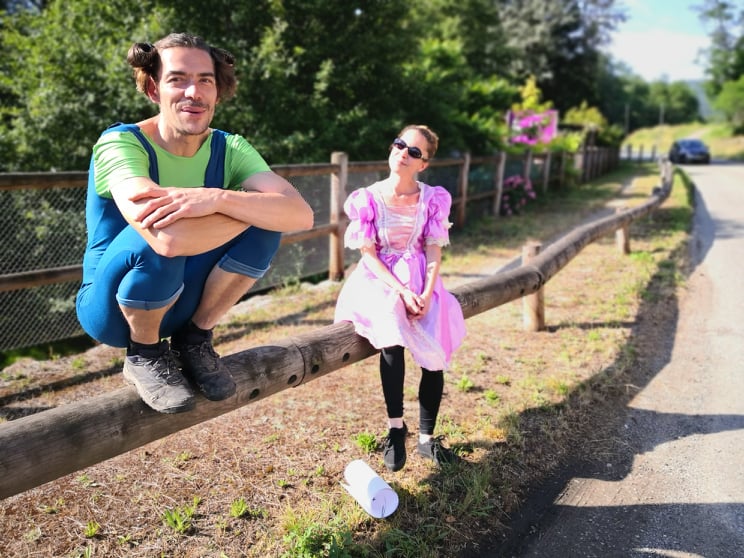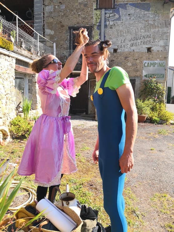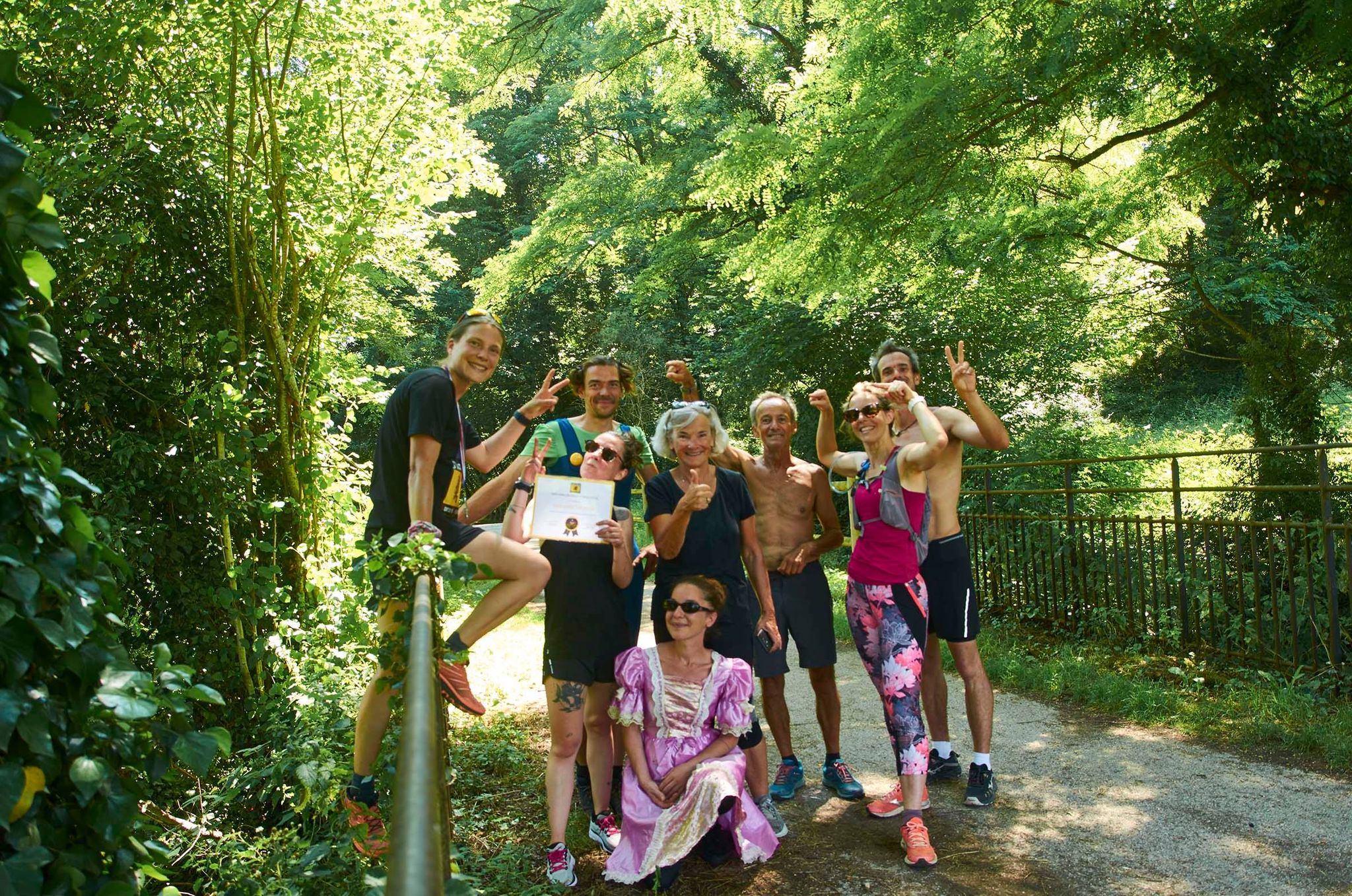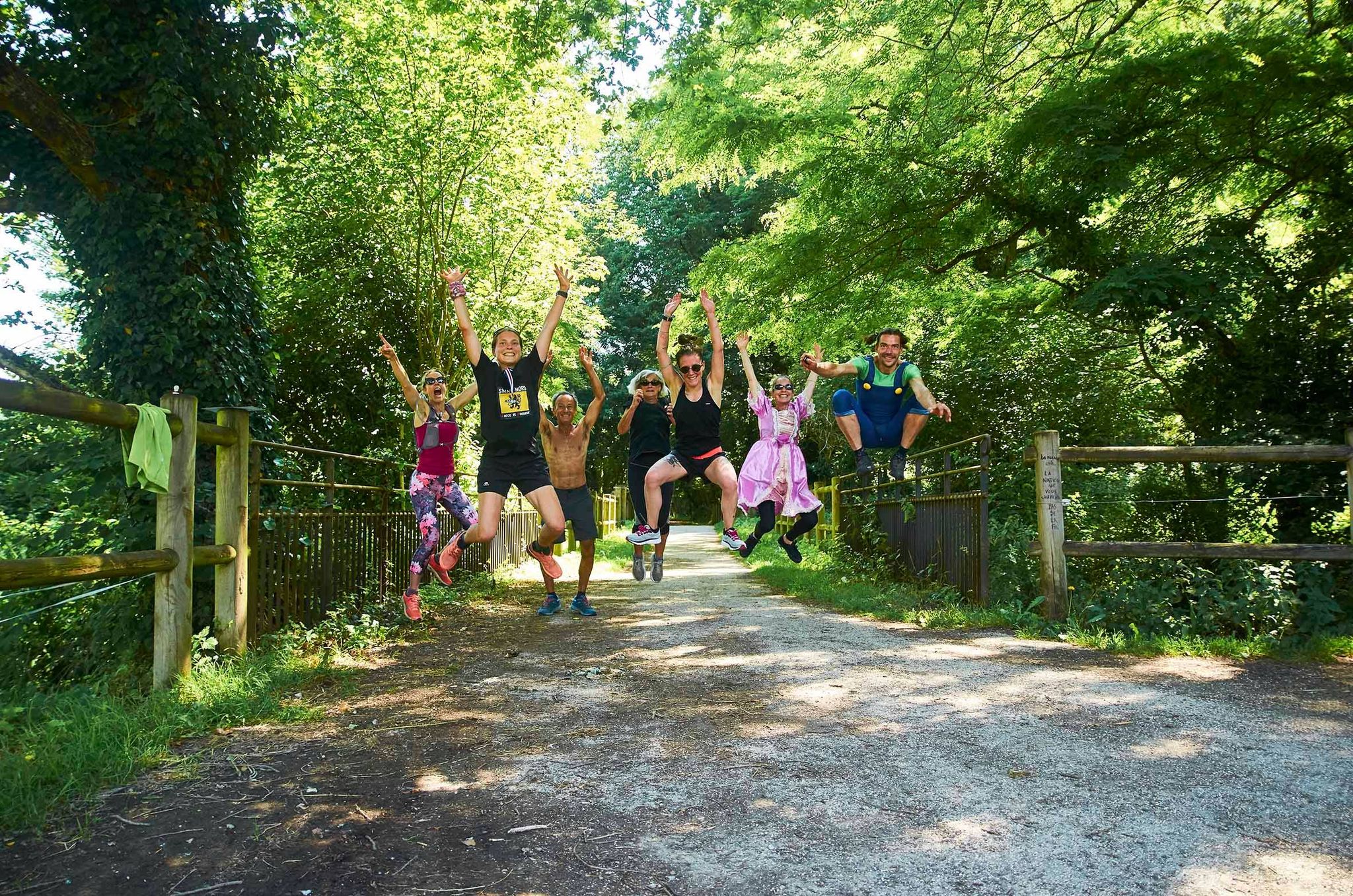 22km… La première moitié… Mes pom pom girls sont au rdv, et même qu’une princesse à robe rose à paillettes et son compagnon Luigi viennent m’encourager. 😉 Quant à mes compagnons de route, ils alternent entre eux: pauses, vélo et CAP. Le 30e km approche, je n’ai toujours pas de symptômes du fameux mur du marathon. Je continue à boire par petites gorgées tous les km environ et à prendre tous les 10 puis 5 km un peu de pâte de fruits ou de pâte d’amande/pistache. Au final, sur le parcours, j’aurai bu mes 2L de camelback et manger 1 pâte de fruits 1/2 et 1 barre de pâte d’amande.