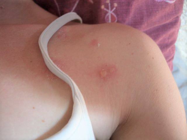 😉 et elle vivait sur ce fameux surplomb la chipie ! Sur les photos, les taches rouges sont apparues les premières heures, la journée était très nuageuse mais même sans soleil les cloques sont aussi apparues en fin de journée, si je me rappelle bien, donc quelques petits UV sont suffisants pour que la brûlure survienne, en tout cas sur peau sensible… Et 7 ou 8 ans après la peau reste hyper-pigmentée aux endroits touchés… »