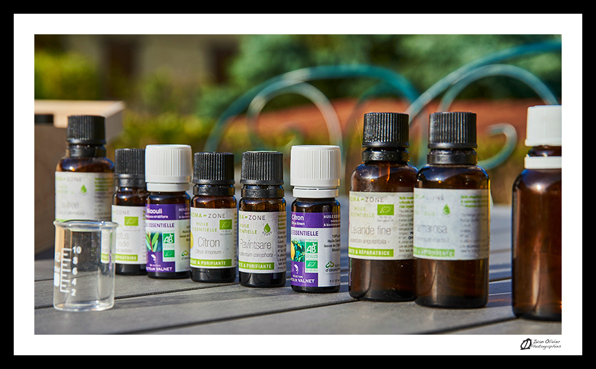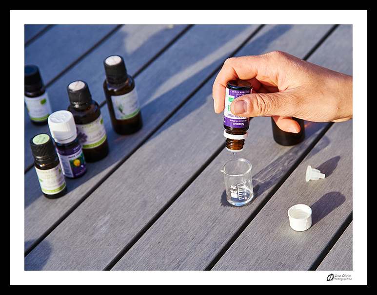 1° Mesurer, à l’aide d’un bécher en verre gradué au ml près, les huiles essentielles une à une.