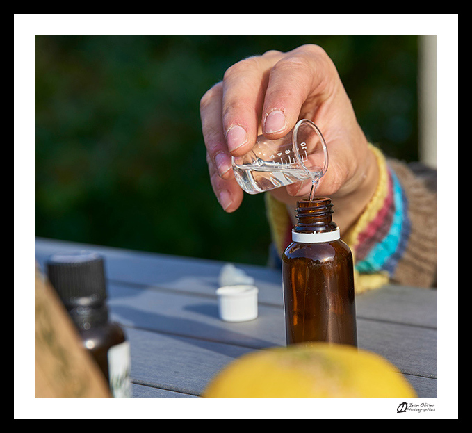 4° Se conserve à l’abri de la chaleur et de la lumière. Vous pourrez trouver le flacon en magasin spécialisé, dans certaines boutiques bio, en pharmacie ou tout simplement en récupération d’un ancien flacon d’huile essentielle!