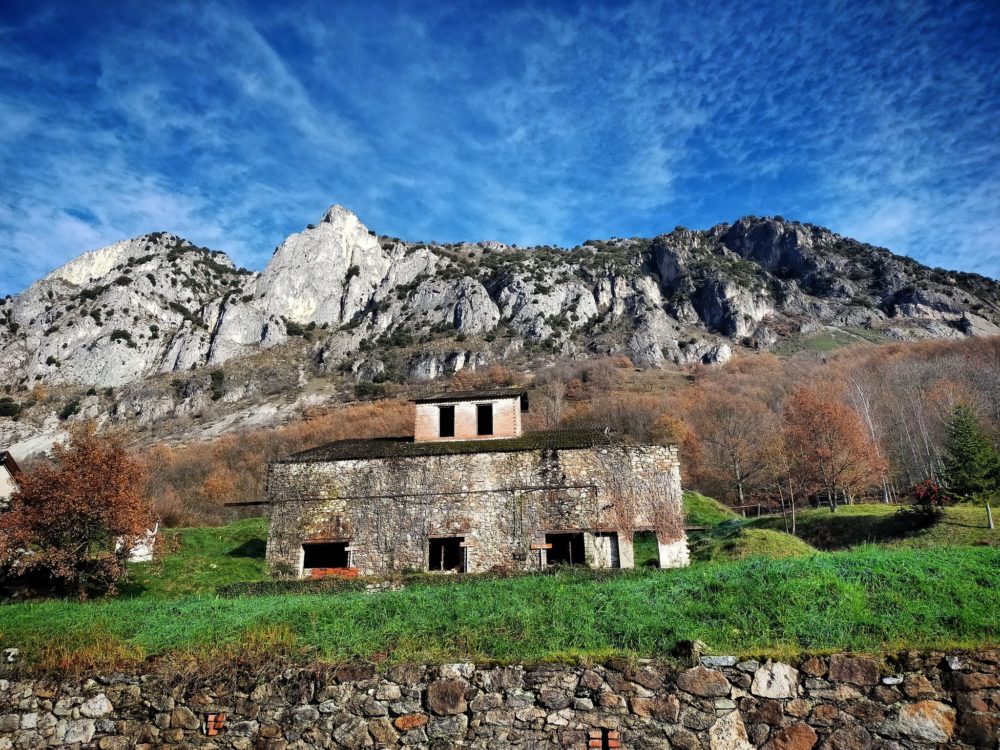 - Sentier encore en construction avec différents panneaux en bois, un balisage en jaune ou des rubalises dans les arbres. 😉 Le départ se fait donc à l’ancienne usine à plâtre de Surba. Contournez-la par la droite pour aller vers la pente du Sédour.