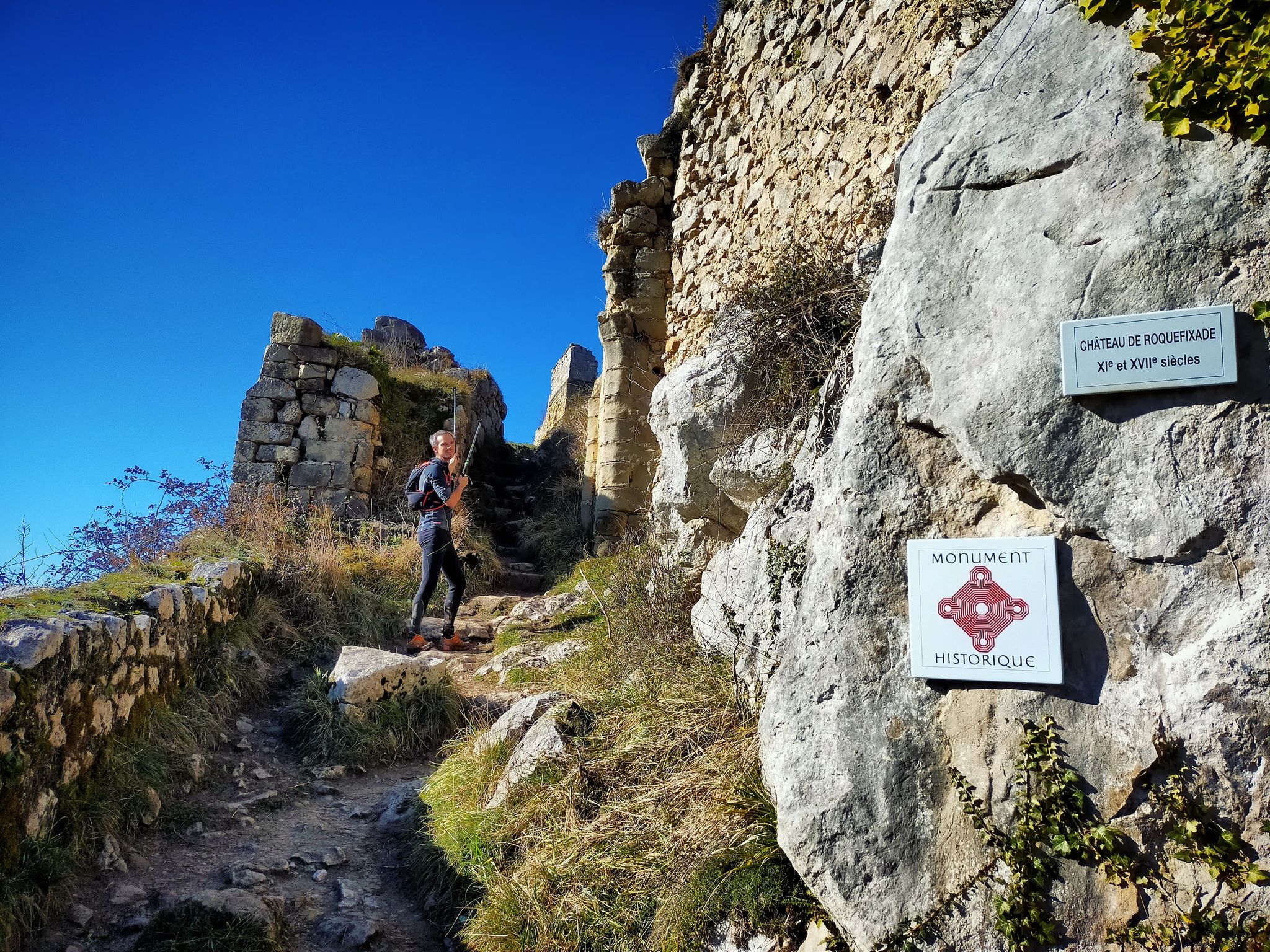 Roquefort les Cascades et Roquefixade sont 2 petites communes situées dans le massif du Plantaurel, entre Foix et Lavelanet en Pays des Pyrénées cathares. Elles sont reliées entre elles par de nombreux sentiers et notamment celui du GR du Pays d’Olmes (que nous n’empruntons que sur quelques mètres pour ce circuit 😉 ). Terre cathare mais aussi des maquisards pendant la seconde guerre mondiale jusqu’à la libération de l’Ariège, Roquefixade est un lieu chargé d’Histoire. Le village est également connu des grimpeurs pour ses falaises situées sous le château, exposées plein sud et bénéficiant d’une vue imprenable sur le massif de Tabes. Roquefort les Cascades, quant à elle, mérite bien son nom grâce à ses cascades magiques et à sa curiosité géologique de mousses pétrifiées…