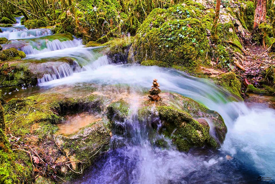La cascade de la Turasse, de 30m de hauteur et sur plusieurs étages, est un petit bijou naturel et magique. De l’eau bleue ou transparente. De l’eau en torrents, en cascades, en vasques, en sources, avec une atmosphère de jungle et des mousses fossilisées qui ressemblent à des rochers! Elle est ce qu’on appelle une « tufière » ou « cascade pétrifiante ». Elle est formée de tuf, un calcaire friable, de couleur blanc à beige. Ce calcaire se dépose sur les mousses et autres végétaux puis donne cet aspect curieux et reconnaissable à la pierre: une texture poreuse, intrigante et très fragile, veillez à emprunter les sentiers! Pour apprécier la robe majestueuse, en eau bouillonnante, de la cascade de la Turasse, préférez la saison de la fonte des neiges!