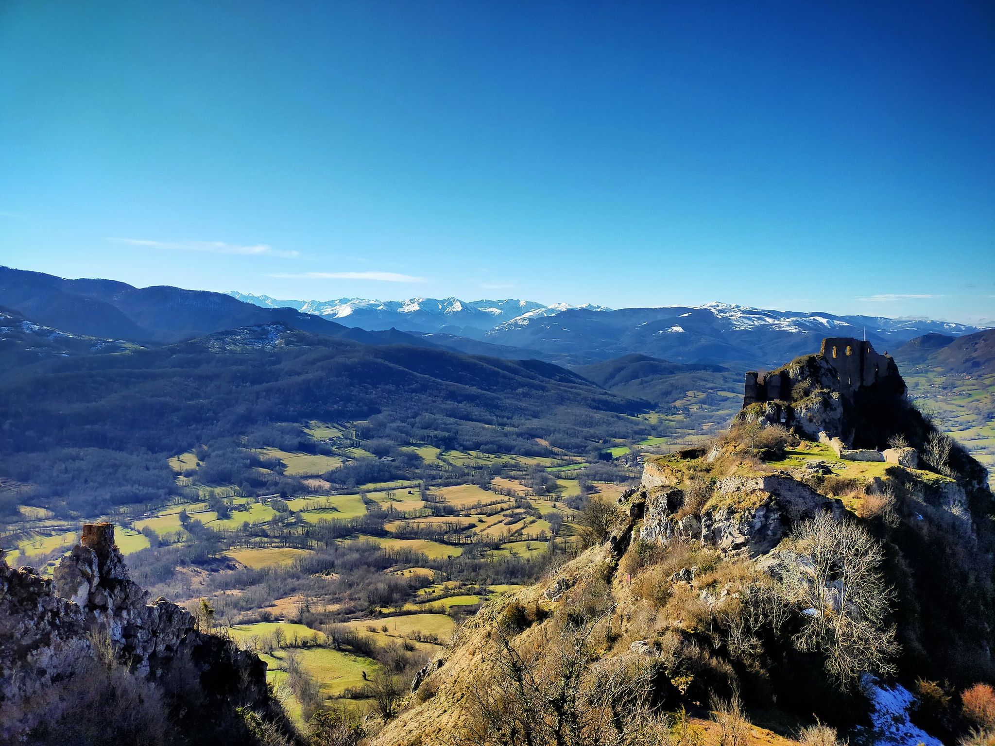 ツ Le chateau de roquefixade et sa vue sur les montagnes