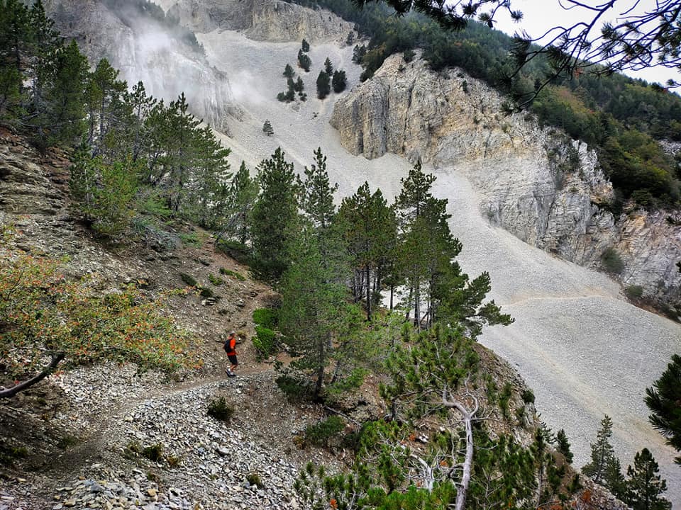 - (~12.5km) Poursuivez alors sur le GR9 en prenant sur votre gauche, vers l’Ouest. Profitez-en, car vous êtes en profil descendant jusqu’au 15e km pour atteindre le point le plus bas à 1308m. Le sentier remonte alors jusqu’au Ravin de la Cave de Diou (~18.5km et 1480m). A partir de là, vous pouvez de nouveau dérouler les guiboles jusqu’à la Combe de Fonfiole puis jusqu’au camping du Mont Serein.