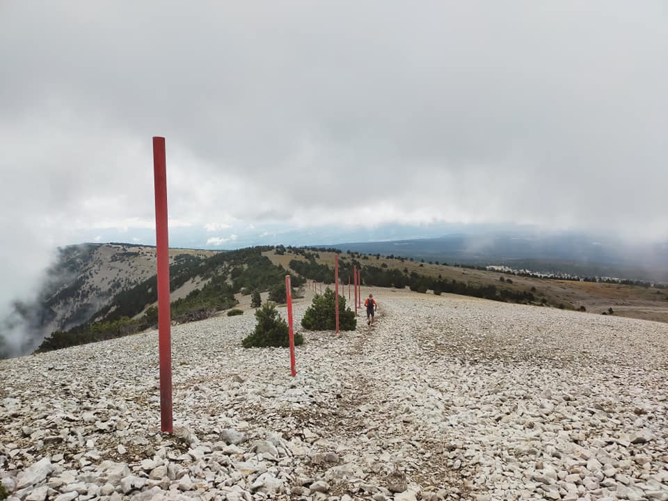 - Technicité: pierrier assez raide en arrivant au sommet du Mont Ventoux + pierrier pas très roulant (attention aux chevilles) en repartant du sommet vers la crête.