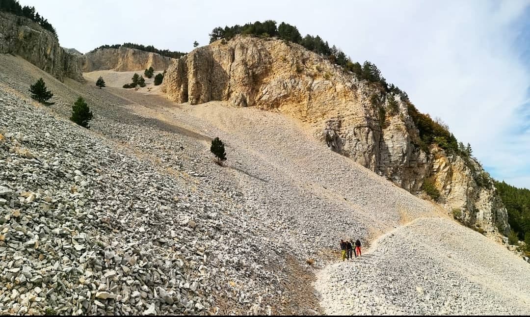 Majestueuse et pouvant donner le vertige à certains, en tout cas, elle ne laisse personne indifférent! Sur ce parcours, nous la traversons par le GR9. Il existe aussi un sentier plus vertigineux « la draille de Fonfiole » située plus près de la crête du Ventoux. A tester un jour prochain! Et si vous avez de la chance – ou que vous vous levez tôt – vous pourrez aussi apercevoir des chamois. 😉