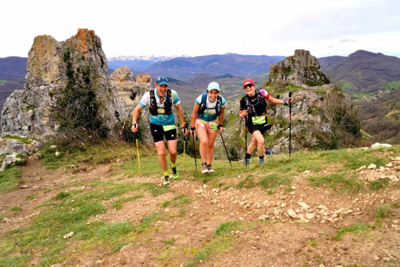 Vous rejoindrez auprès des ruines de Péchiquelle le parcours du 40km et une longue et rude montée vous mènera alors au col du Tremblement, depuis lequel vous devrez gravir le mythique mur menant au Château de Montségur. La descente technique passée avec prudence, vous rejoindrez le ravitaillement de Montferrier par le splendide Sentier Cathare avant de traverser plusieurs bois et gravir de nouvelles côtes qui vous feront rejoindre le château de Roquefixade.