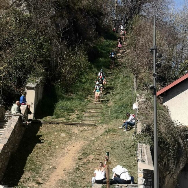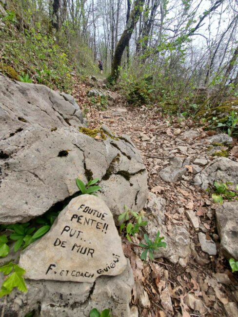 Dommage que nous n’ayons pas de photos de certains stands de villageois spontanés avec des bonbons ou des ravitos bien achalandés ou de tous les bénévoles qui encouragent les coureurs. Le Trail des Citadelles réunit beaucoup de monde où l’accueil est roi, où les photographes te donnent la pêche et où le smile ne quitte jamais tes lèvres de toute la course. Même quand les premières douleurs apparaissent… Enfin, il faut remercier largement aussi les copains/famille qui nous ont accompagnés pendant ces kilomètres. Des soutiens non négligeables. Comme le fait d’avoir couru en trinôme. Ça fait du bien au mental.