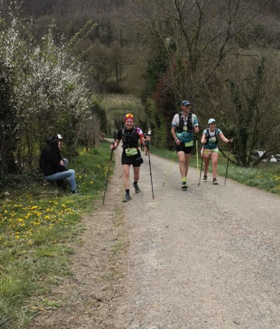 - Mél M: « Une luxation du genou et 2 années d’attente: me voilà enfin au départ de mon 1er 40km. Notre gentil trinôme s’élance pour une belle journée de 7h16 de trail. Mais nous arrivons déjà à la fameuse montée de Raissac. Le coach a fait son travail, l’arrivée est proche. Le temps passe vite dans ces décors variés et nos belles citadelles. Toutes les planètes se sont alignées pour vaincre les difficultés mais aussi pour partager beaucoup de plaisir. »