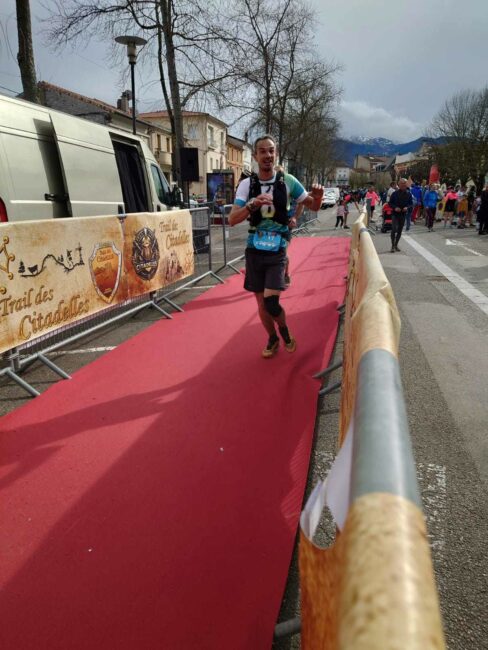- Ivan: « L’idée de base était simplement de prendre du plaisir sur un format que je ne connaissais pas. J’avais anticipé ce trail, plus long que d’habitude, en allant faire des sorties longues sur les traces des « anciens Citadelles ». Un peu trop longues d’un coup car je me suis mis à souffrir du syndrome de l’essuie glace sur le genou gauche. Le 31 mars 2024, le départ fut donné et j’ai pris un rythme qui m’a permis de discuter avec toutes les personnes que j’ai pu croiser (quand tu as l’habitude de croiser les autres coureurs en tant que photographe et que tu deviens toi-même coureur, ça étonne 😉 ). La suite s’est déroulée sans encombre, sans stress, sans perte de motivation et surtout tout en aisance. C’était surtout ça mon objectif : écouter mon corps sur une distance plus longue pour finir en parfaite condition. Car oui, je souhaite augmenter encore les distances mais cette fois en ayant un entrainement plus conséquent et en partant sans blessure. »