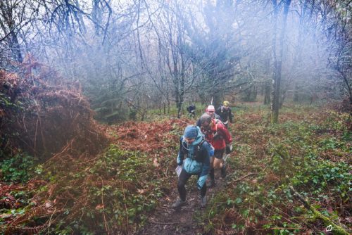 Une bonne partie de régalade malgré la pluie, la boue, les flaques, les zones humides, le vent et la rude montée de l’oppidum du puy de gaudy en fin de parcours = une bonne petite bavante glissante de seulement 200d+ ! Ça ne se voit pas trop sur les photos mais toutes ces conditions météorologiques étaient bien présentes au départ et tout au long de la course, histoire de vraiment mériter le repas et la douche d’après-course. Tout pour faire une partie de lou Loup Garou comme il se doit…. Il ne manquait que les jeux de rôles et la tombée de la nuit pour se croire dans une CO en mode Escape Game.
