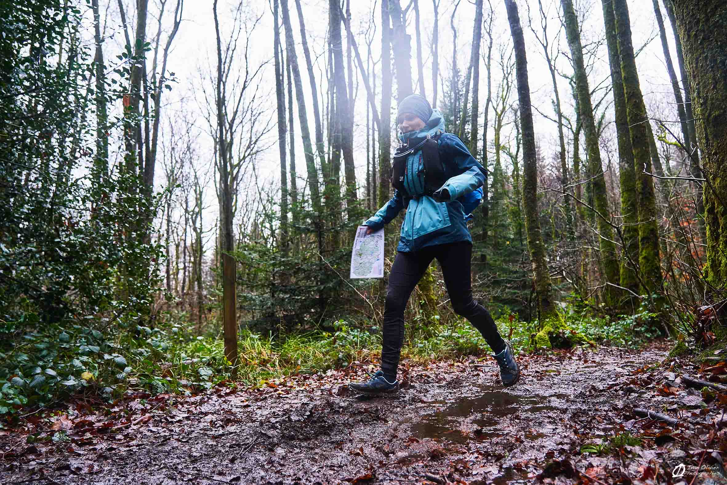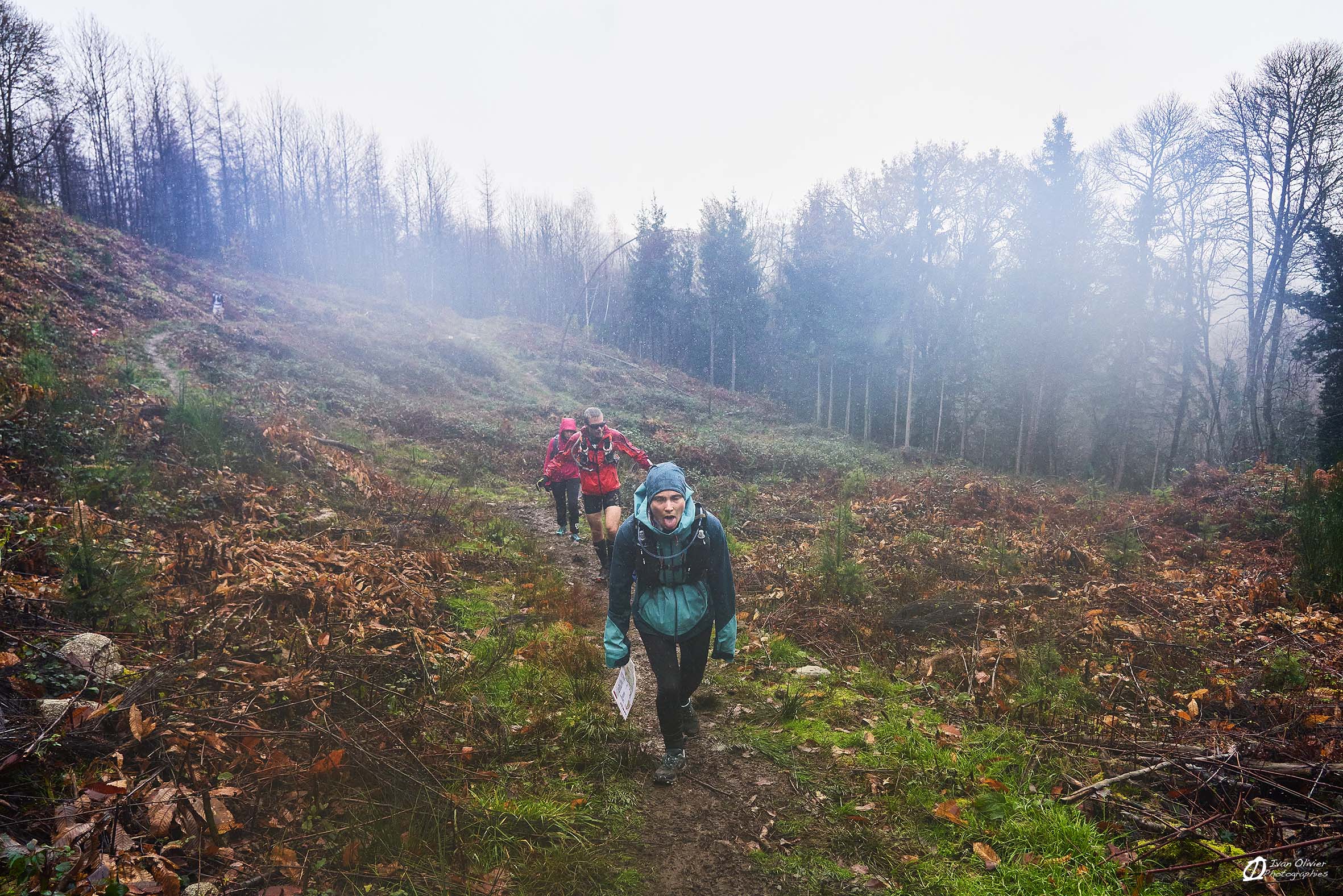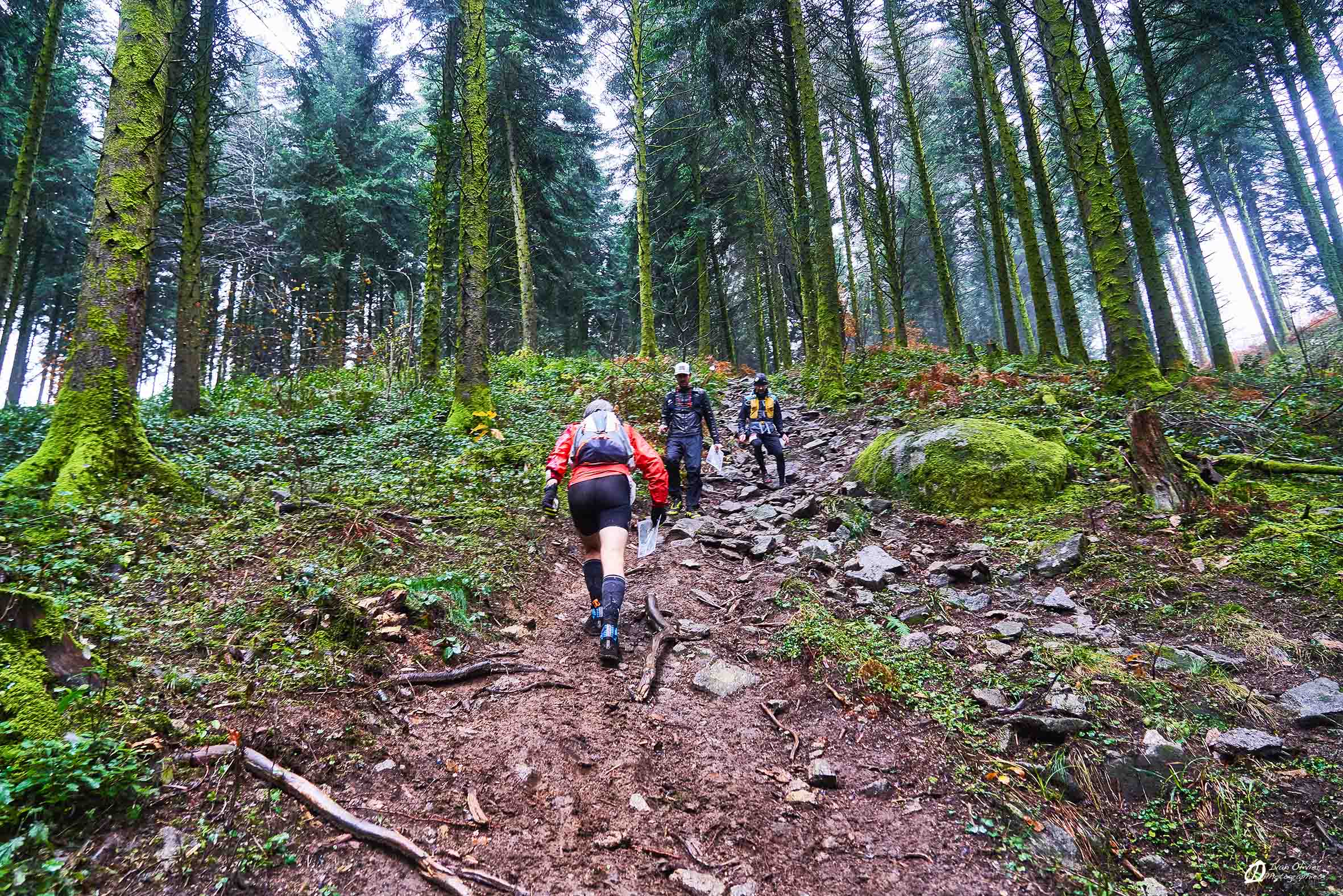 Une bonne partie de régalade malgré la pluie, la boue, les flaques, les zones humides, le vent et la rude montée de l’oppidum du puy de gaudy en fin de parcours = une bonne petite bavante glissante de seulement 200d+ ! Ça ne se voit pas trop sur les photos mais toutes ces conditions météorologiques étaient bien présentes au départ et tout au long de la course, histoire de vraiment mériter le repas et la douche d’après-course. Tout pour faire une partie de lou Loup Garou comme il se doit…. Il ne manquait que les jeux de rôles et la tombée de la nuit pour se croire dans une CO en mode Escape Game.