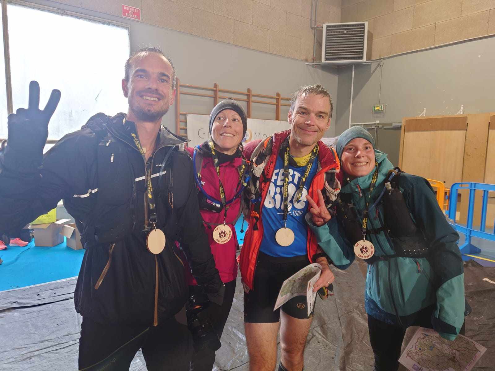 En mode dilettantes, sans projet particulier et nous croyant dans les derniers, quelle ne fut pas notre surprise de faire un podium, du moins féminin, avec Gaëlle. 5e ex-aequo. Dommage pour les garçons. Il n’y avait pas de classement par équipe juste par catégorie F et M.